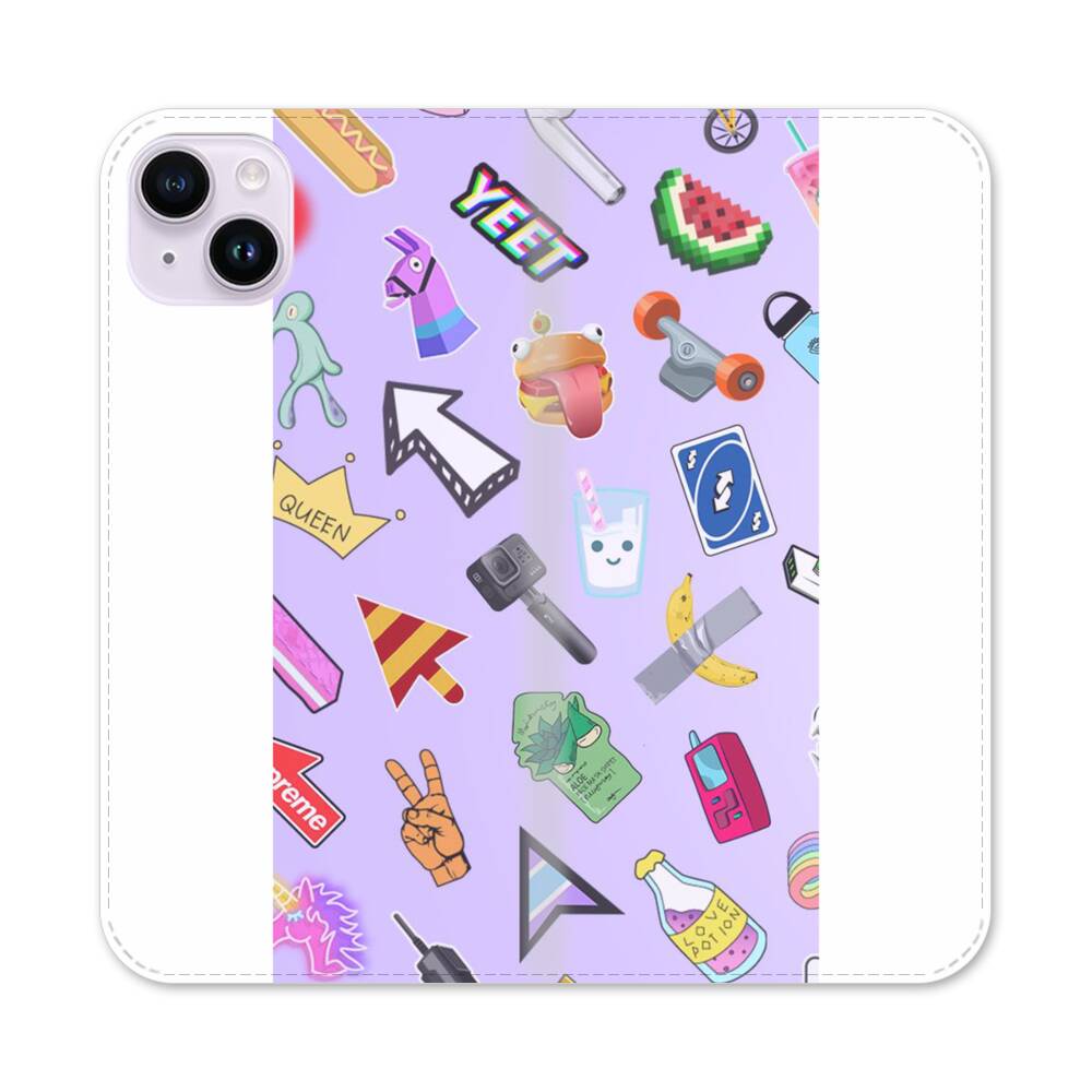 Süße Sticker Apple iPhone 14 Plus Flip Case● Seitlich klappbar