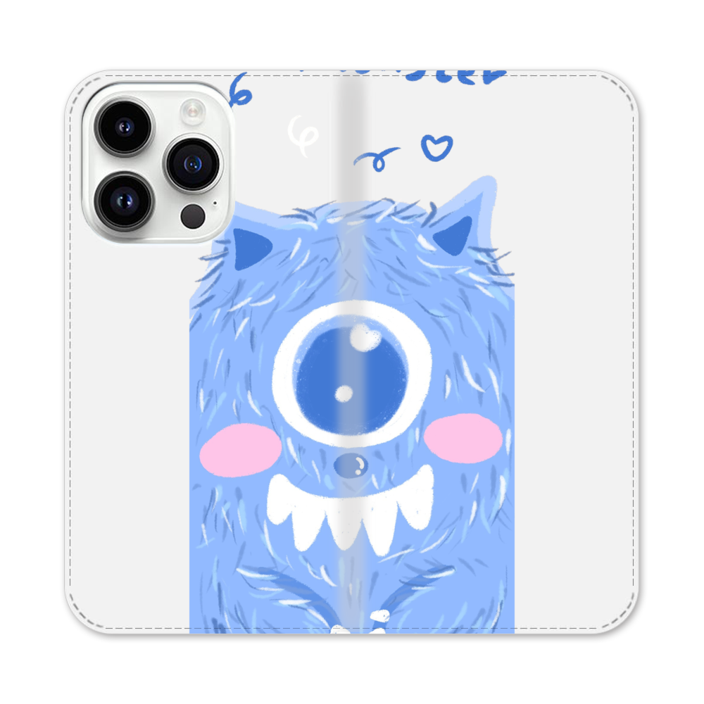 Niedliches Blaues Monster Apple iPhone 14 Pro Flip Case● Seitlich klappbar