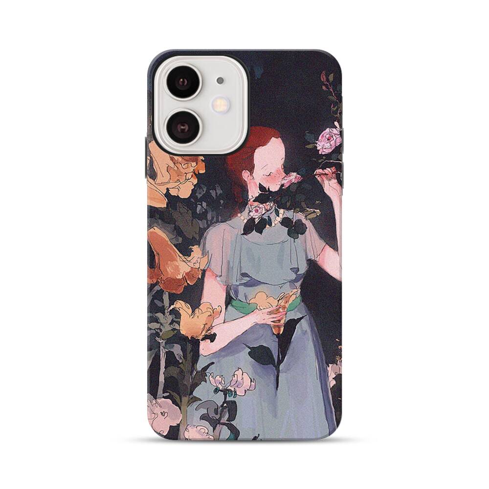 Dame im Garten Apple iPhone 12 Hybrid Case● Rundum bedruckbar