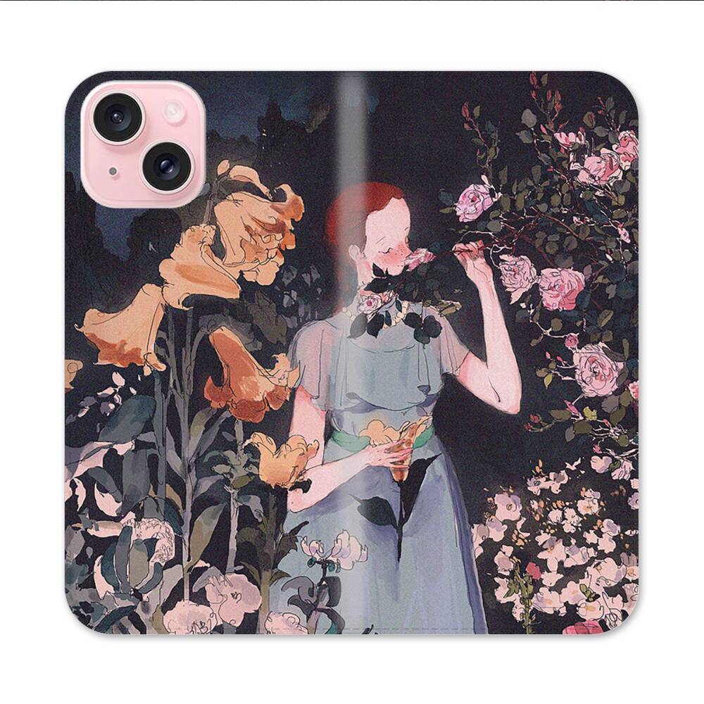 Dame im Garten Apple iPhone 15 Flip Case● Seitlich klappbar