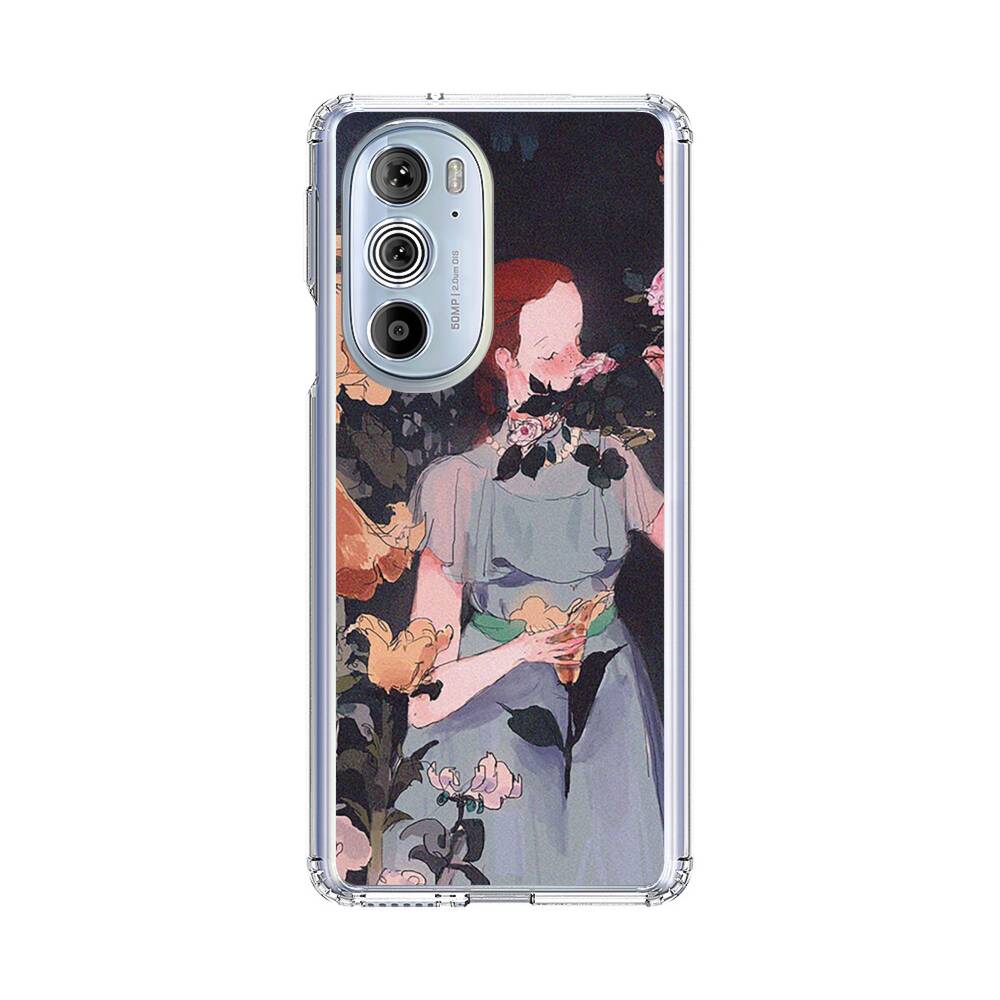 Dame im Garten Motorola Edge Plus (2022) Silikon Hülle● Sehr robust & langlebig