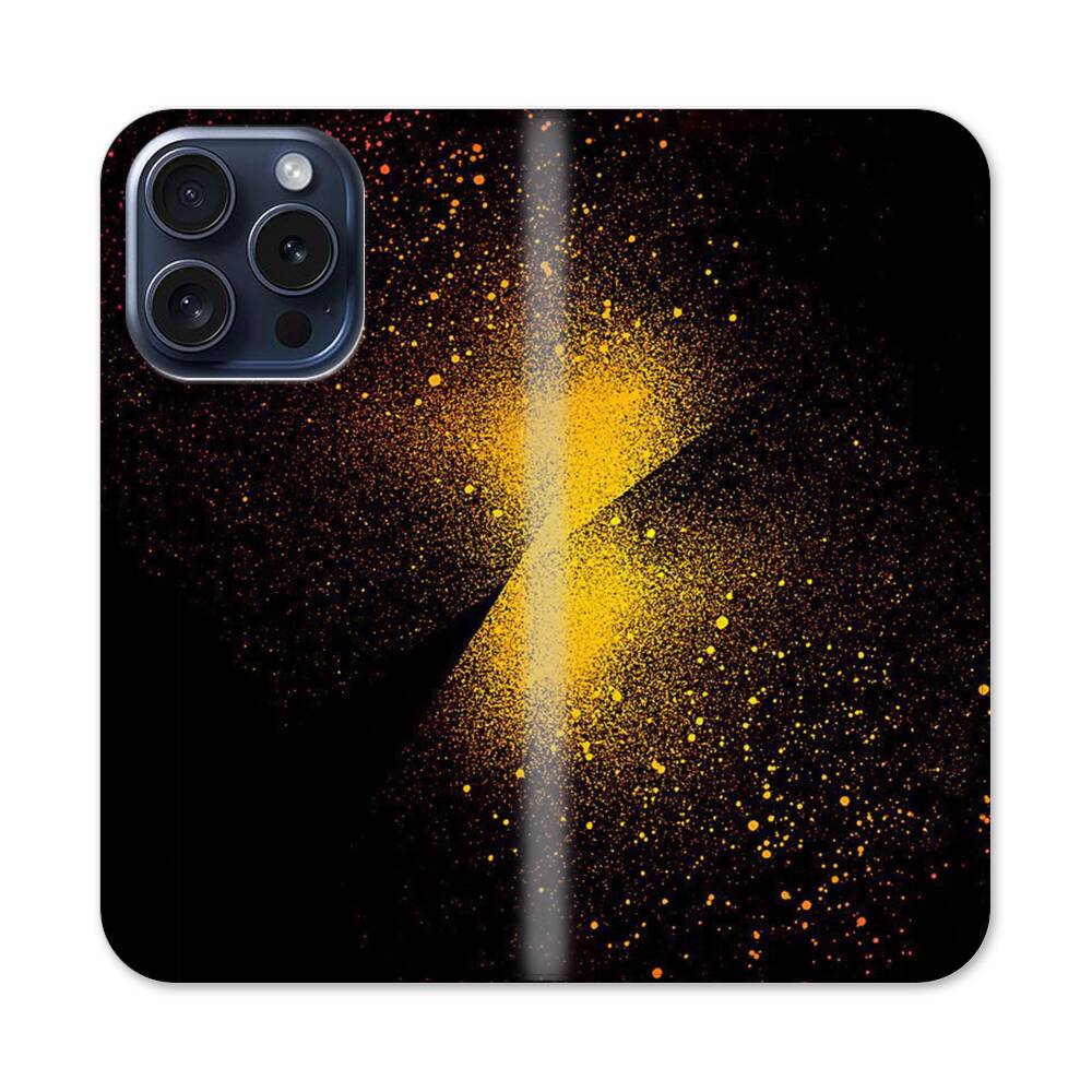 Golde Sternstaubteilchen Apple iPhone 15 Pro Flip Case● Seitlich klappbar