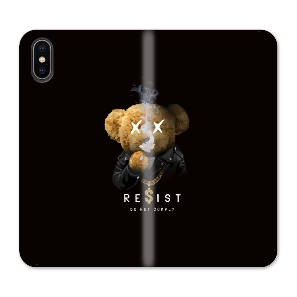 Der Rauchende Teddy iPhone XS Wallet Leder Hülle● Seitlich klappbar