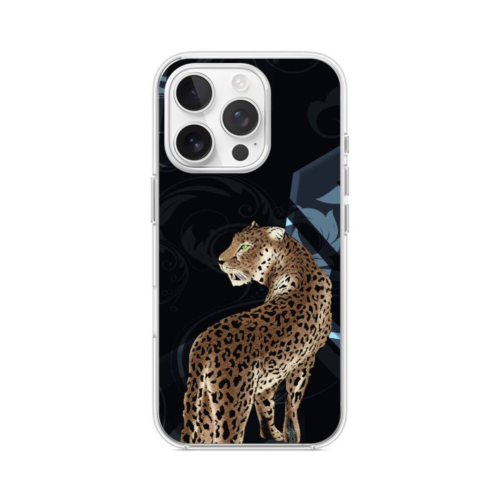 Mitternacht Leopard iPhone 15 Pro MagSafe‑kompatible Silikonhülle mit Kamera‑Kickstand● Sehr robust & langlebig