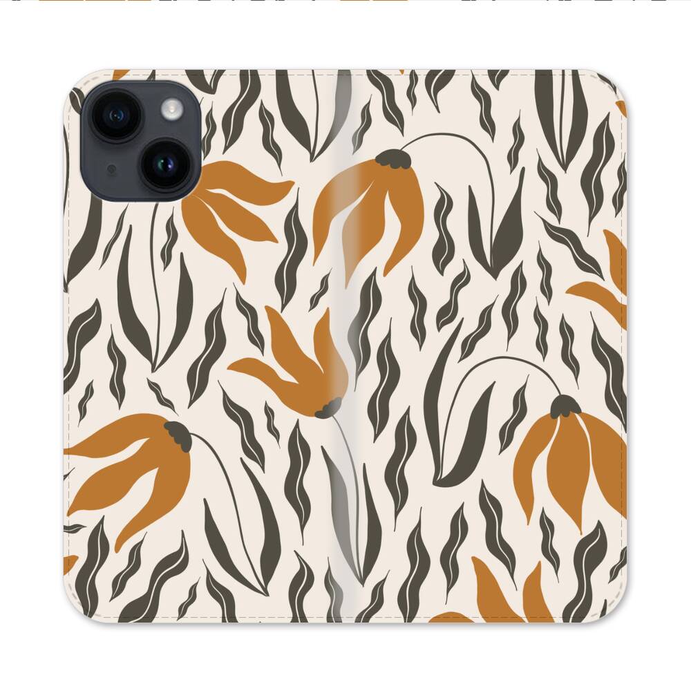 Goldene Blumen Apple iPhone 14 Flip Case● Seitlich klappbar