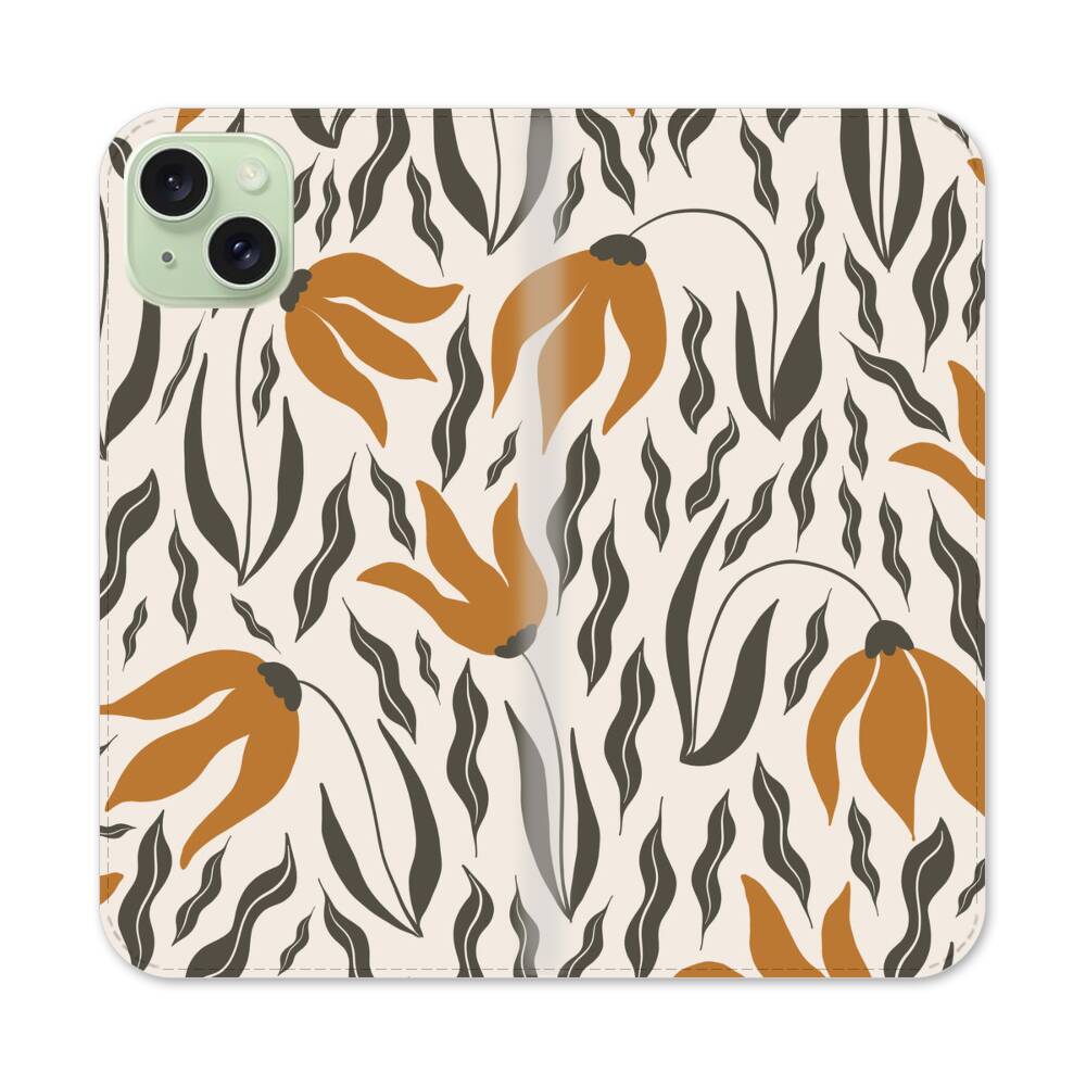 Goldene Blumen Apple iPhone 15 Plus Flip Case● Seitlich klappbar
