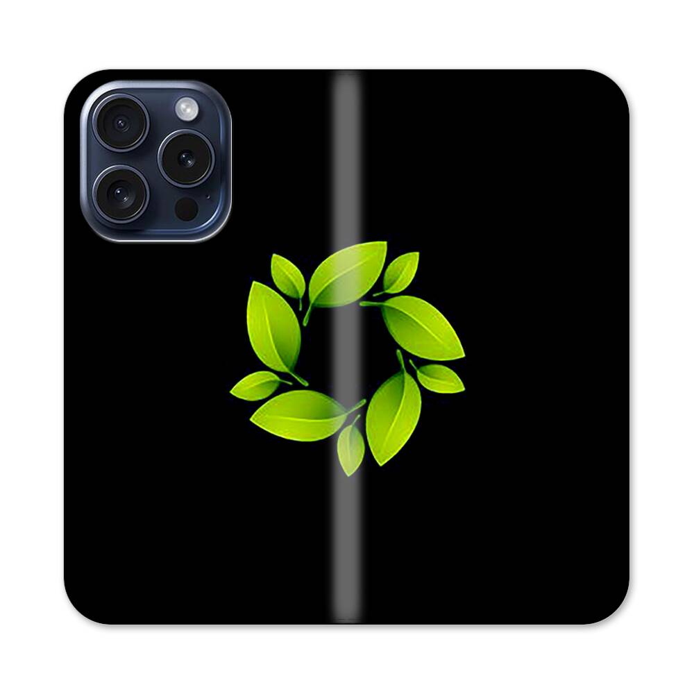 Grüner Blattkranz Apple iPhone 15 Pro Flip Case● Seitlich klappbar