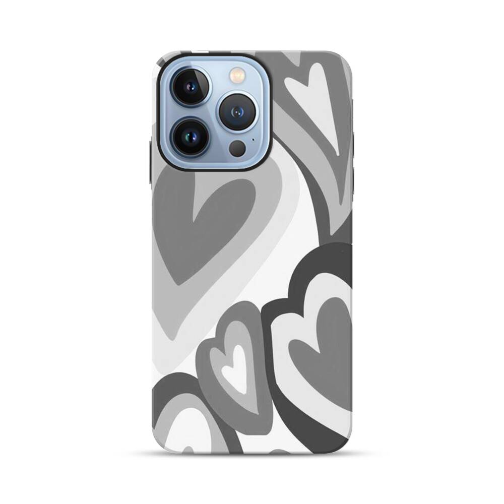 Graue Herzen Apple iPhone 13 Pro Hybrid Case● Rundum bedruckbar