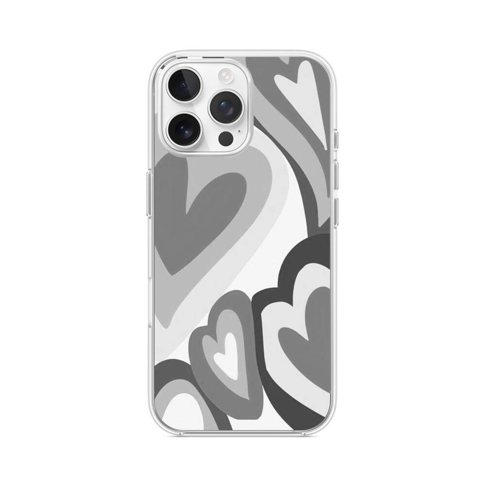 Graue Herzen iPhone 16 Pro Max MagSafe‑kompatible Silikonhülle mit Kamera‑Kickstand● Sehr robust & langlebig