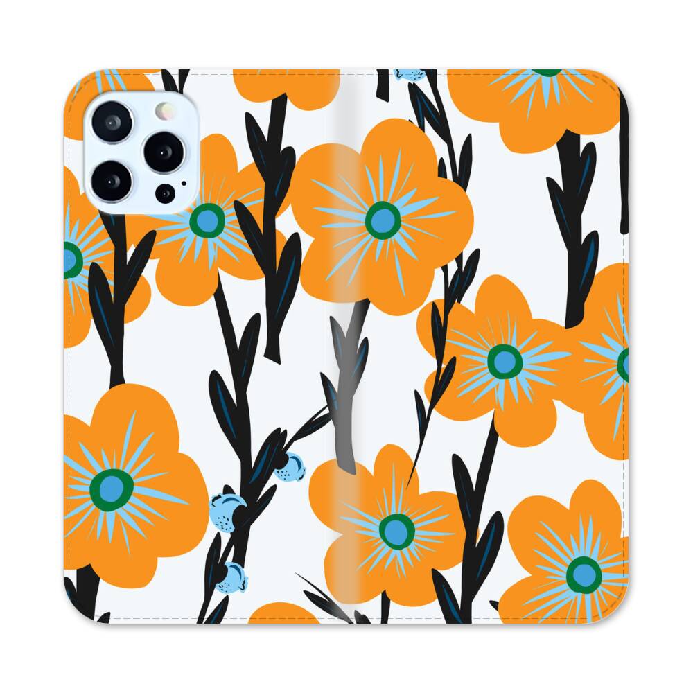 Nahtlose Orange Blumen Apple iPhone 12 Pro Flip Case● Seitlich klappbar