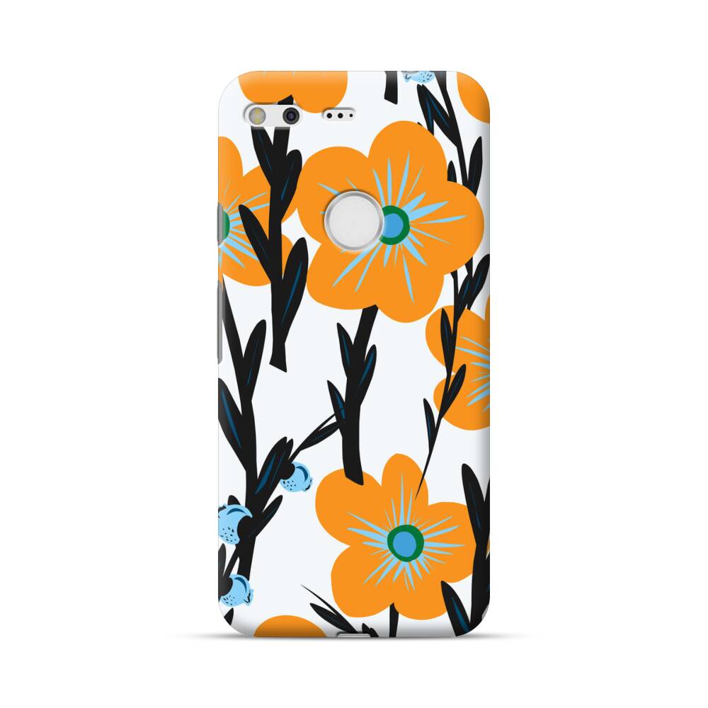 Nahtlose Orange Blumen Google Pixel Hülle● Rundum bedruckbar