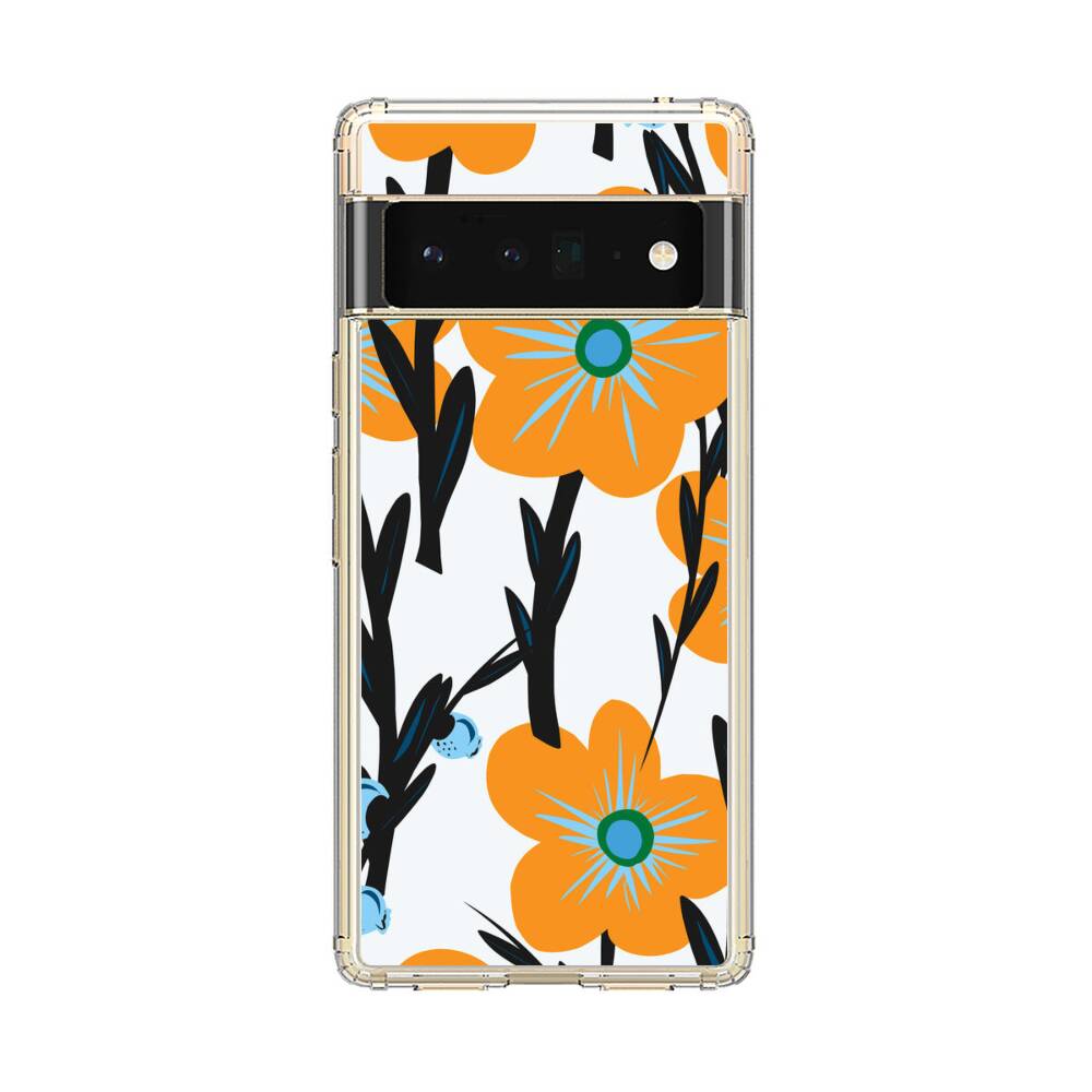 Nahtlose Orange Blumen Google Pixel 6 Pro Silikon Hülle● Sehr robust & langlebig