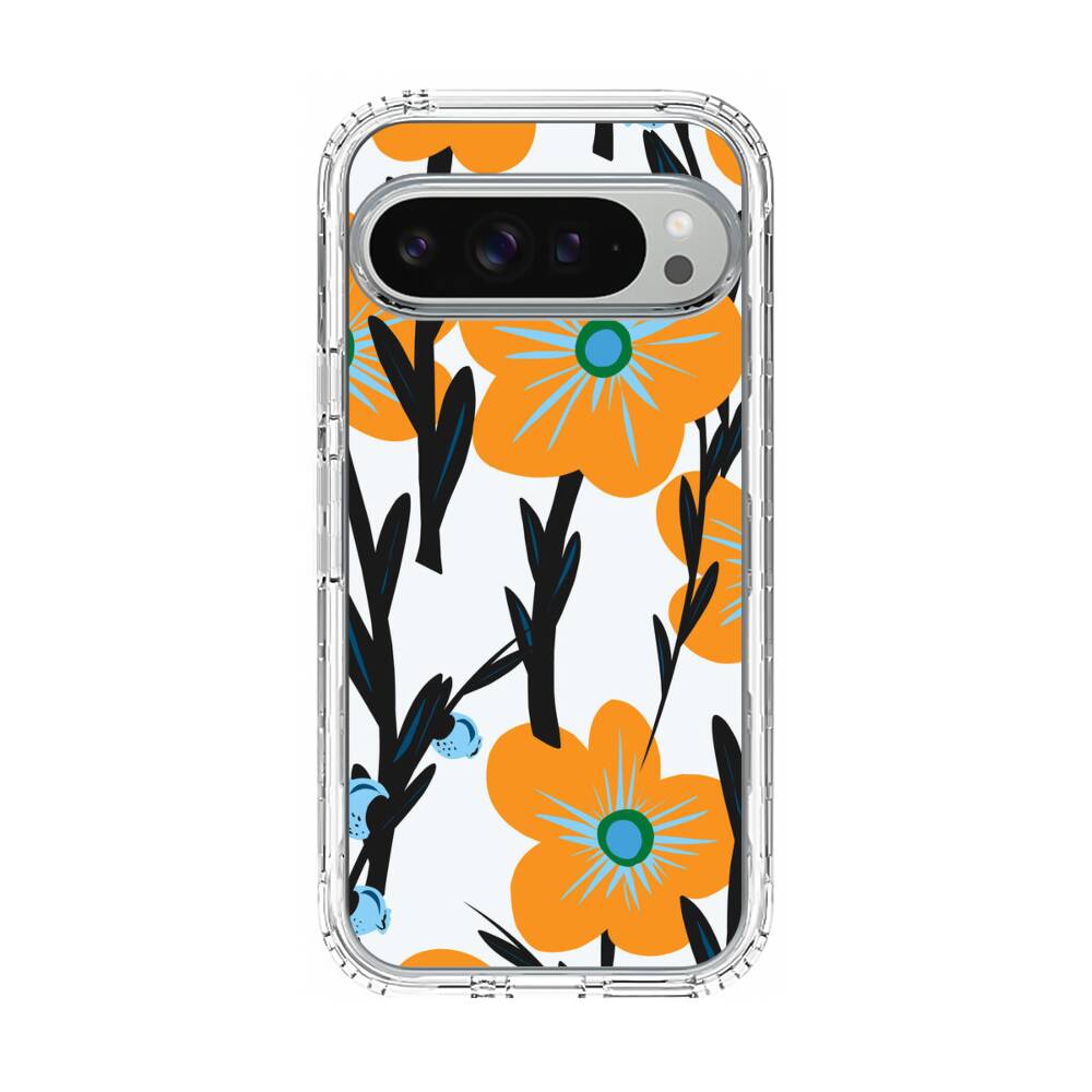Nahtlose Orange Blumen Google Pixel 9 Pro XL Silikon Hülle● Sehr robust & langlebig