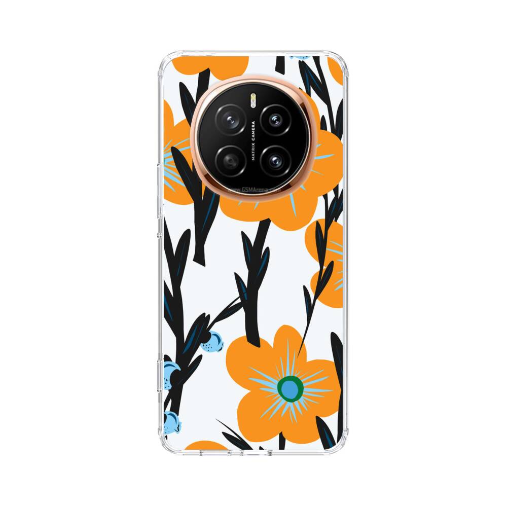 Nahtlose Orange Blumen Huawei Honor Magic 7 Silikon Hülle● Sehr robust & langlebig
