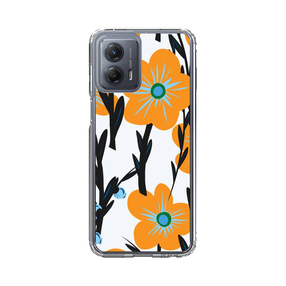 Nahtlose Orange Blumen Motorola Moto G 5G (2023) Silikon Hülle● Sehr robust & langlebig