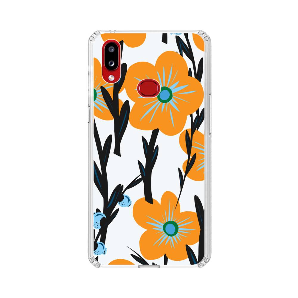 Nahtlose Orange Blumen Samsung Galaxy A10s Silikon Hülle● Sehr robust & langlebig