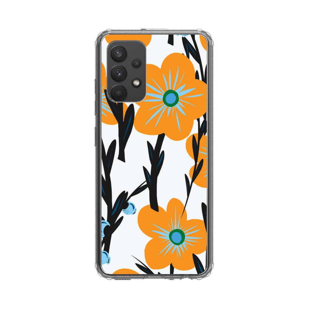 Nahtlose Orange Blumen Samsung Galaxy A32 (4G) Silikon Hülle● Sehr robust & langlebig