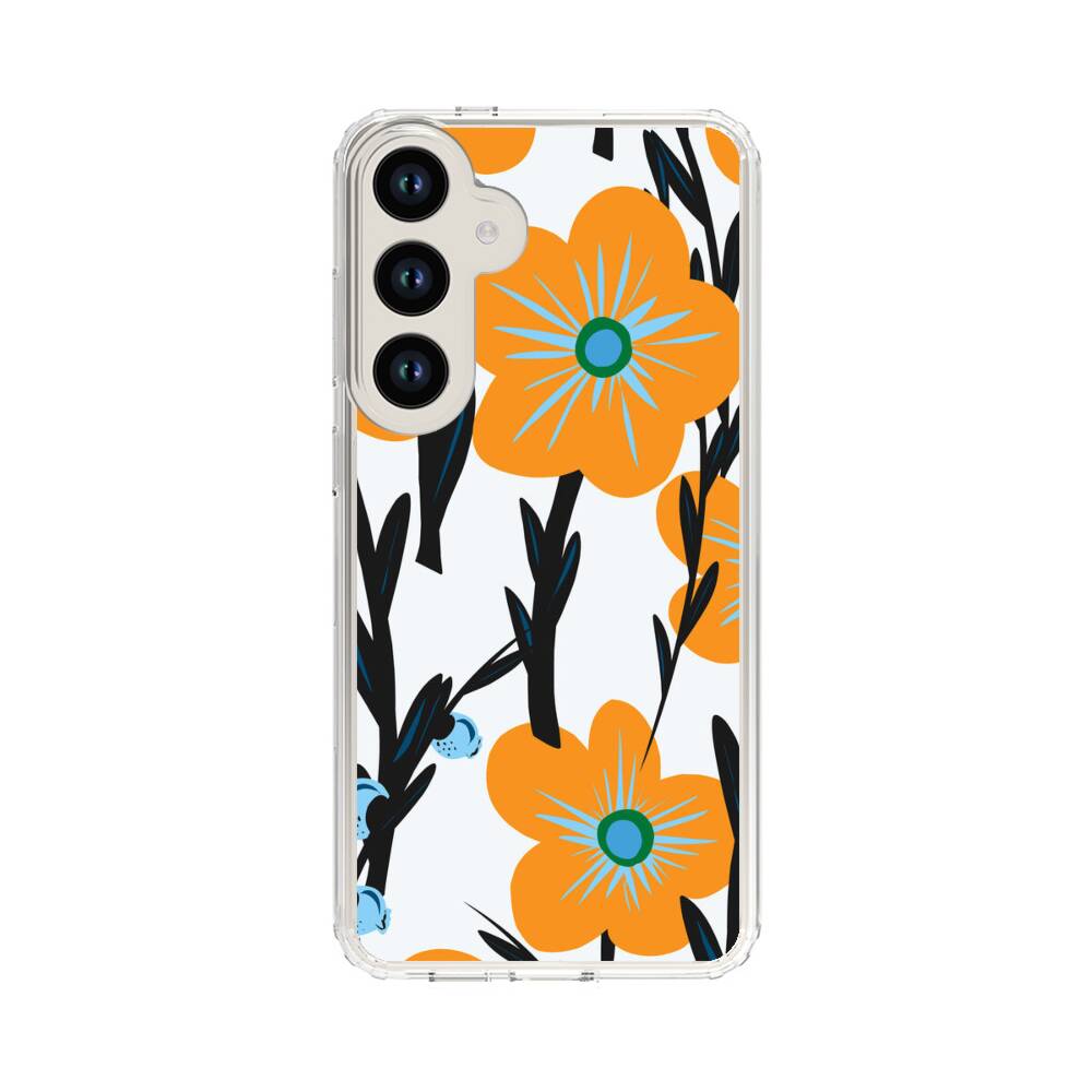 Nahtlose Orange Blumen Samsung Galaxy S24 Plus Silikon Hülle● Sehr robust & langlebig