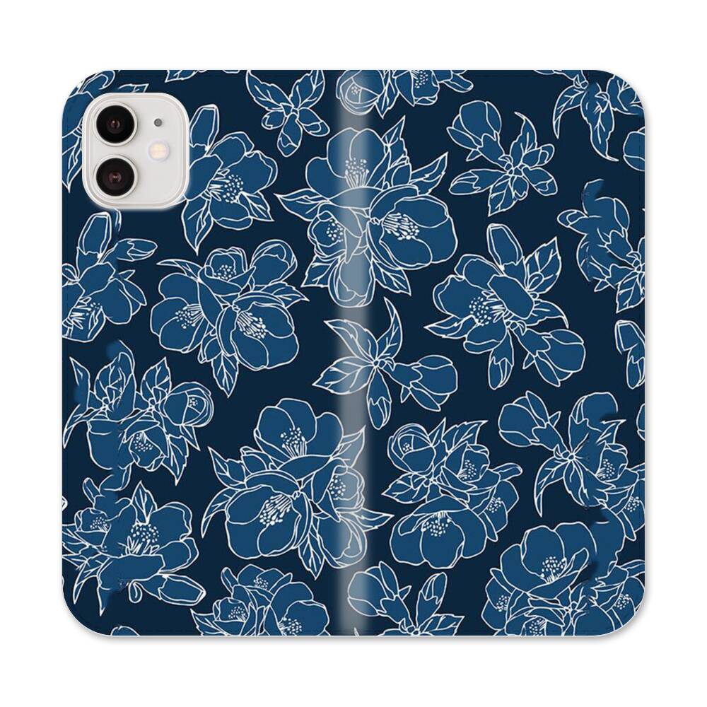 Dunkelblaue Blumen Apple iPhone 12 Flip Case● Seitlich klappbar