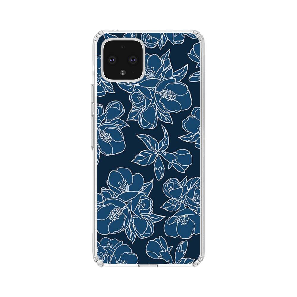 Dunkelblaue Blumen Google Pixel 4 XL Silikon Hülle● Sehr robust & langlebig
