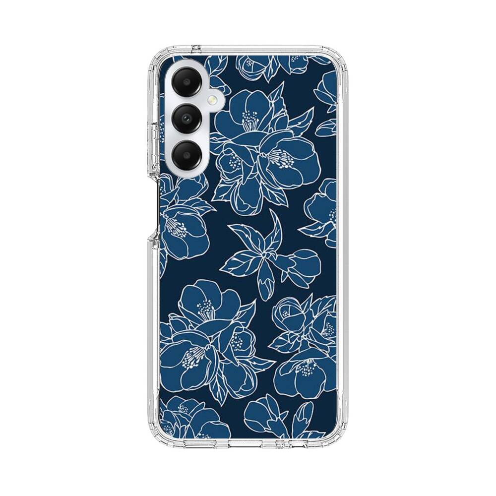 Dunkelblaue Blumen Samsung Galaxy A05s Silikon Hülle● Sehr robust & langlebig