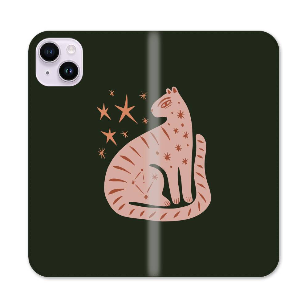 Sterne um eine Katze Apple iPhone 14 Plus Flip Case● Seitlich klappbar