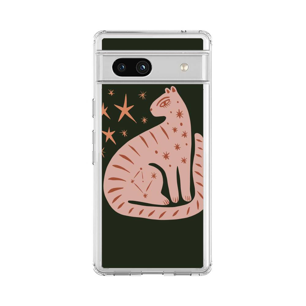 Sterne um eine Katze Google Pixel 7a Silikon Hülle● Sehr robust & langlebig