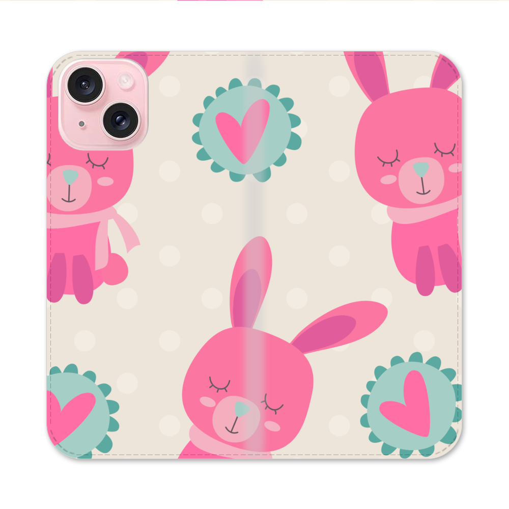 Cartoon Hasen Apple iPhone 15 Flip Case● Seitlich klappbar