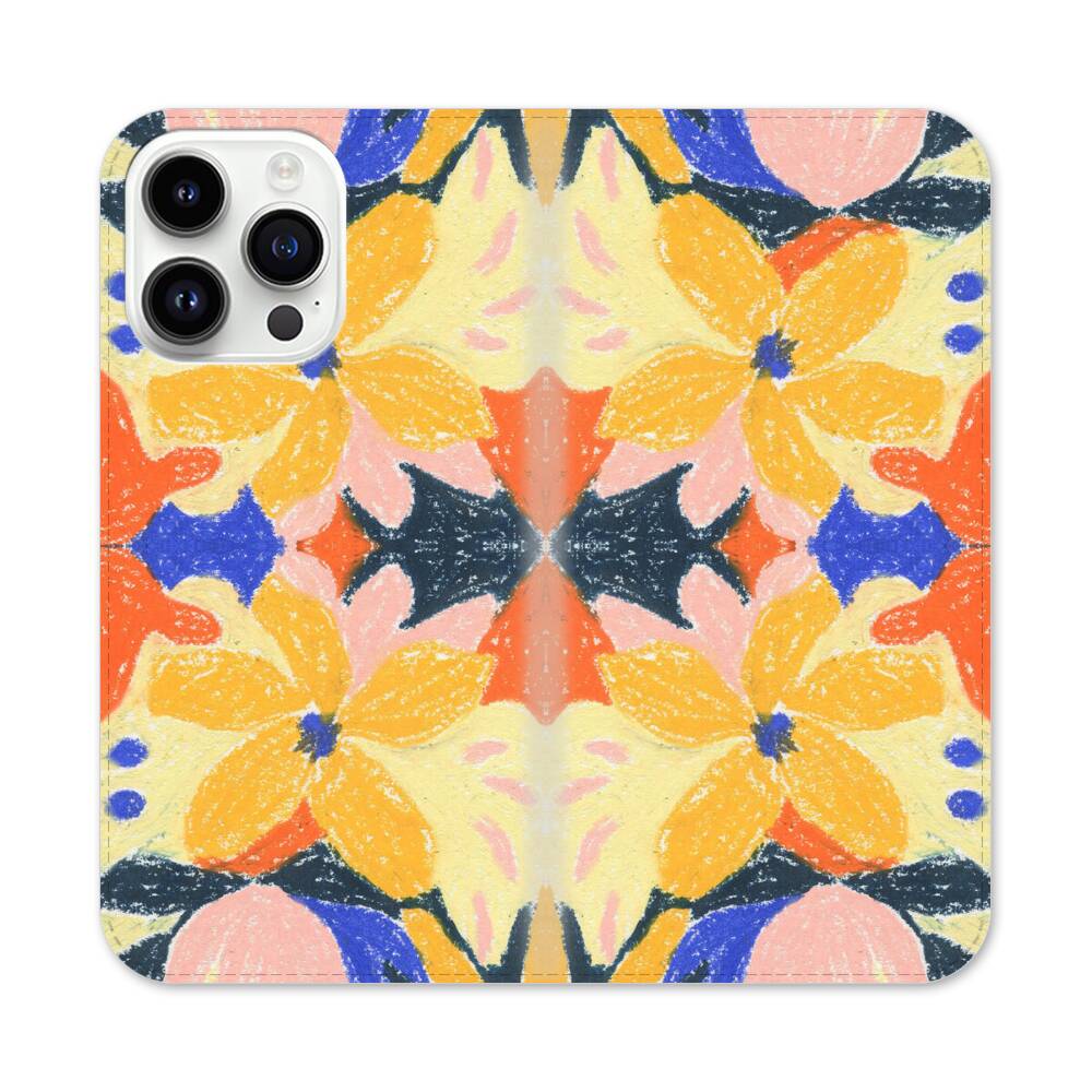Spiegelbildliche Blumen Apple iPhone 14 Pro Max Flip Case● Seitlich klappbar