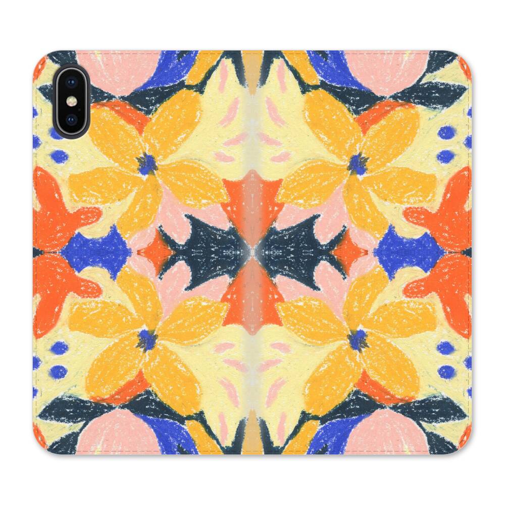 Spiegelbildliche Blumen iPhone XS Wallet Leder Hülle● Seitlich klappbar