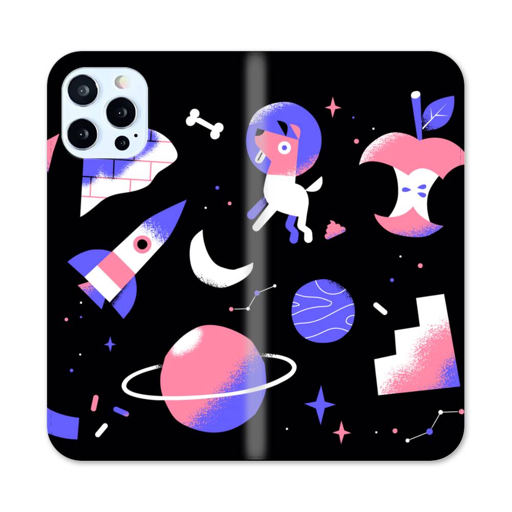 Hund im Weltraum Apple iPhone 12 Pro Flip Case● Seitlich klappbar