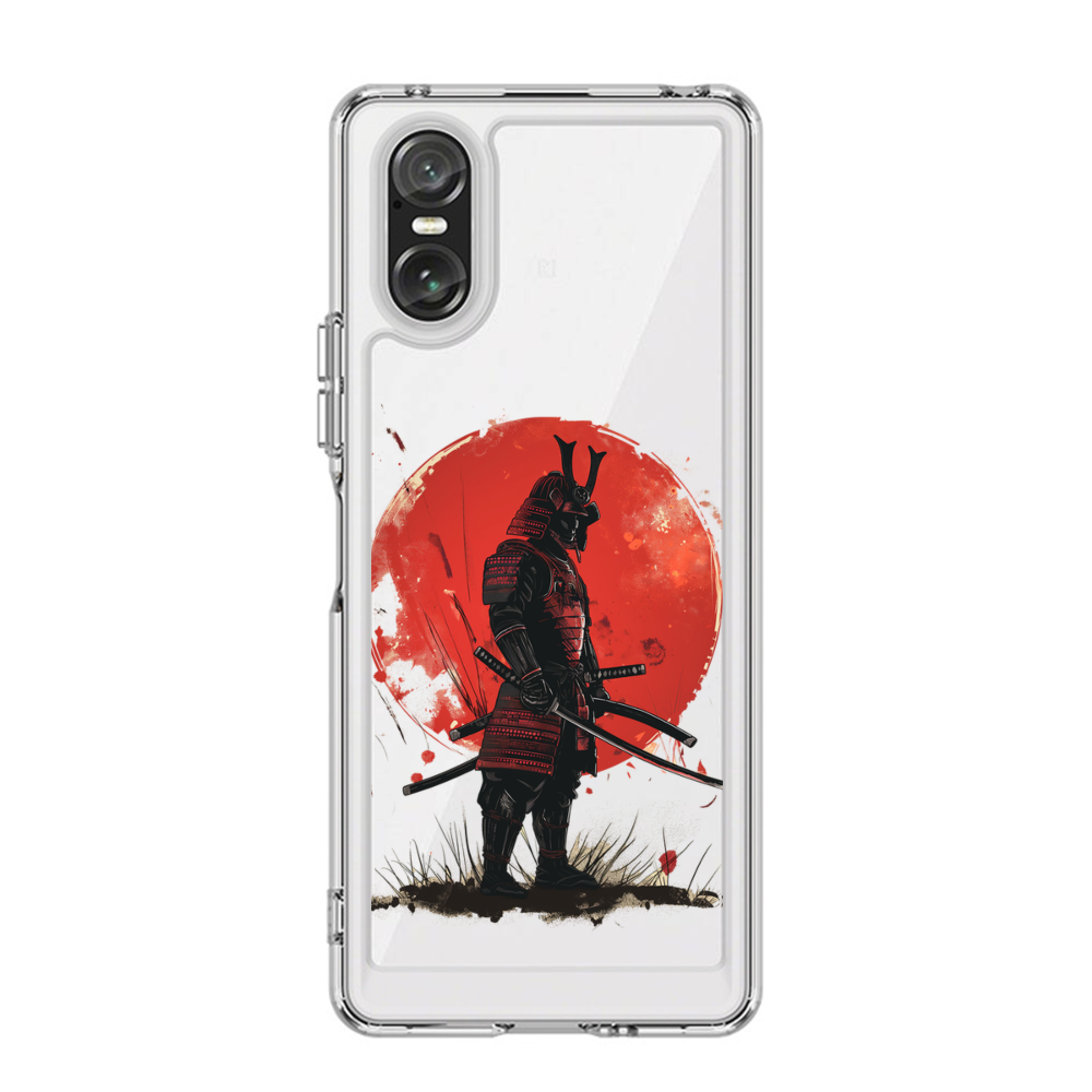 Samurai mit Hinterrund vom Mond Sony Xperia 10 VI Silikon Hülle● Sehr robust & langlebig