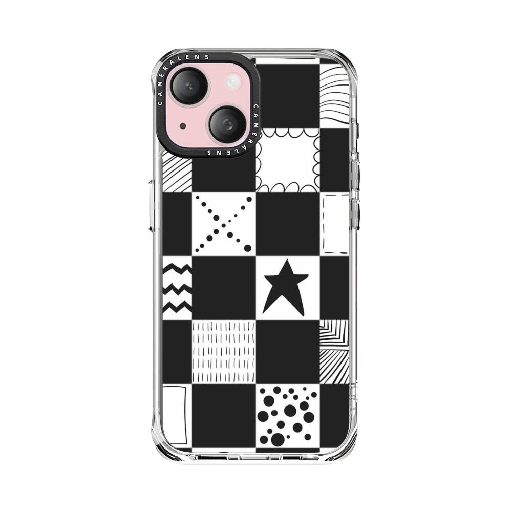 Schwarz Weiß Karos Apple iPhone 15 Silikon Hülle● Sehr robust & langlebig