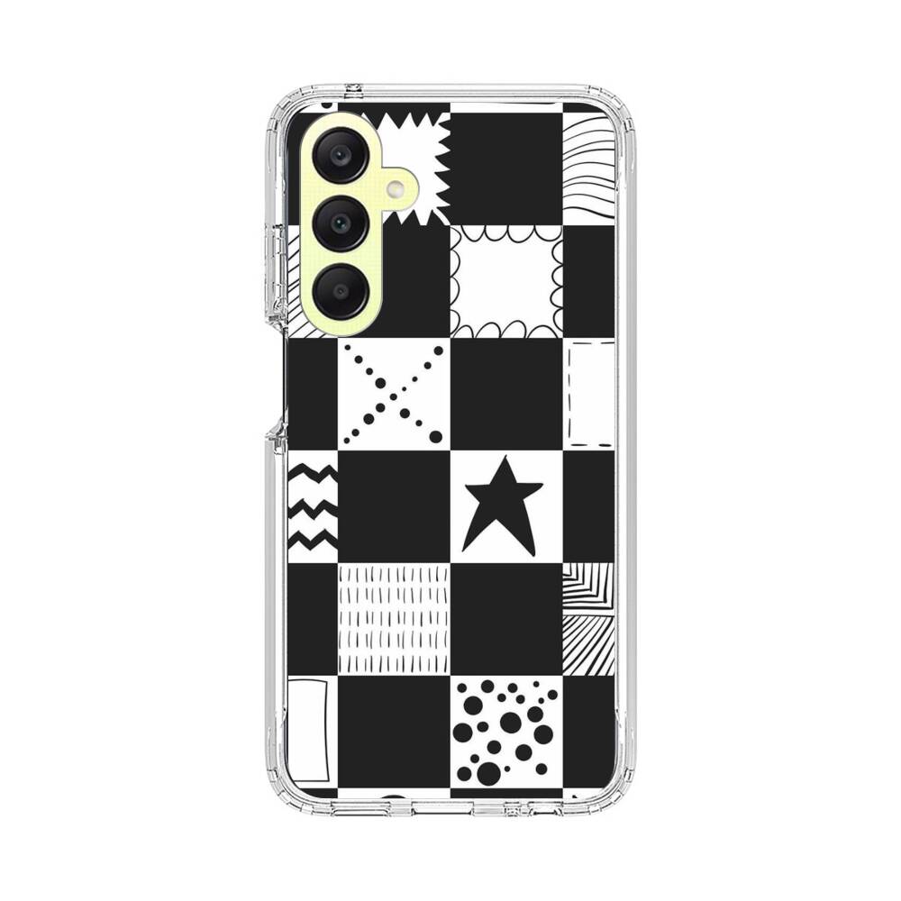 Schwarz Weiß Karos Samsung Galaxy A25 Silikon Hülle● Sehr robust & langlebig
