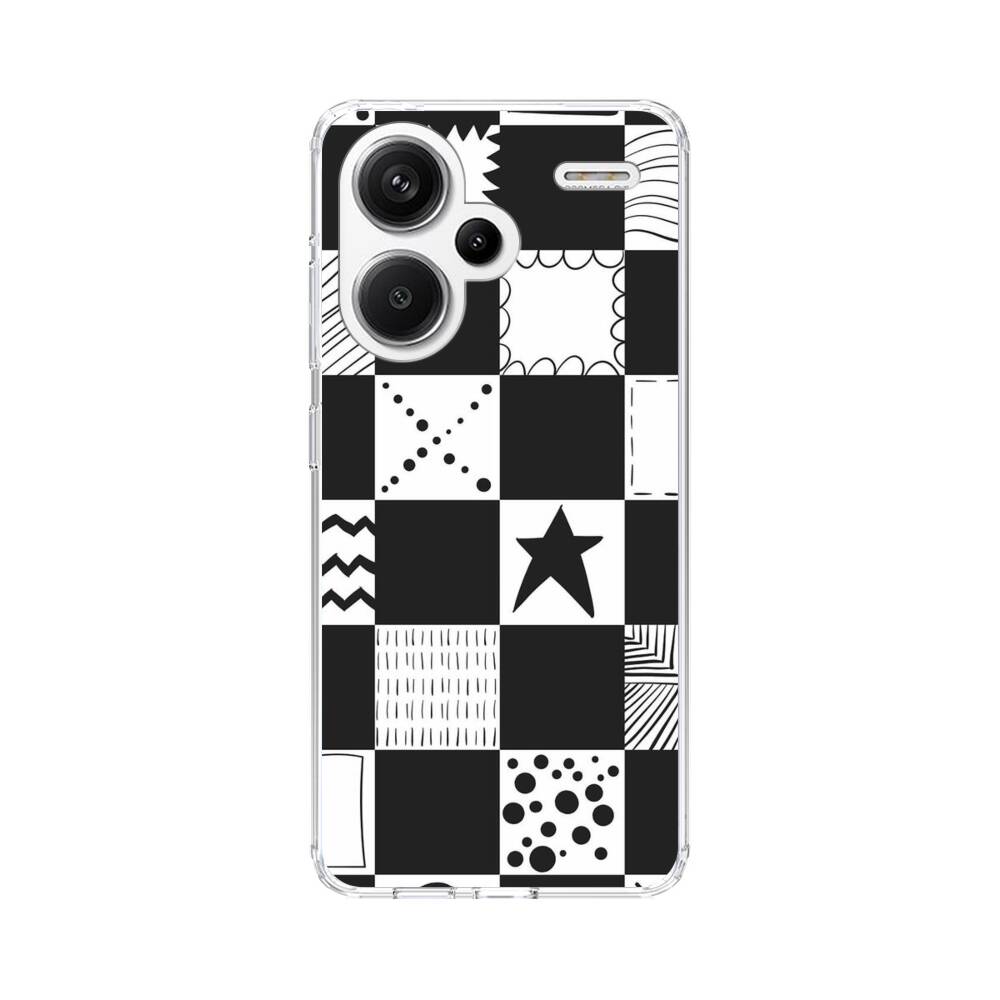 Schwarz Weiß Karos Xiaomi Redmi Note 13 Pro Plus Silikon Hülle● Sehr robust & langlebig
