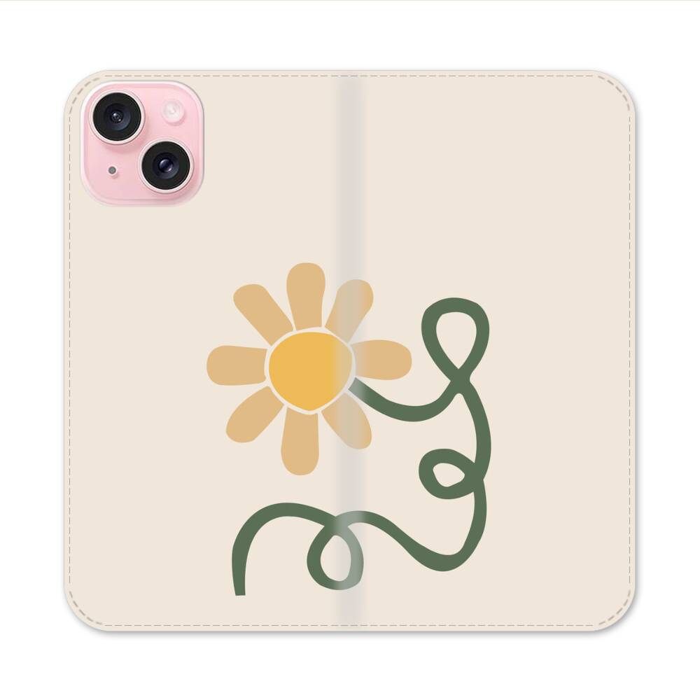 Minimalistische Sonnenblumen Apple iPhone 15 Flip Case● Seitlich klappbar