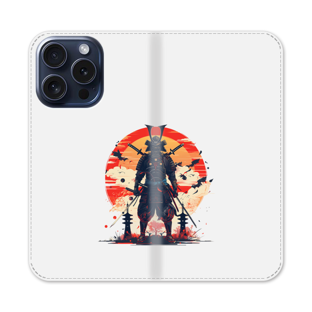 Samurai mit Hintergrund von der Sonne Apple iPhone 15 Pro Flip Case● Seitlich klappbar