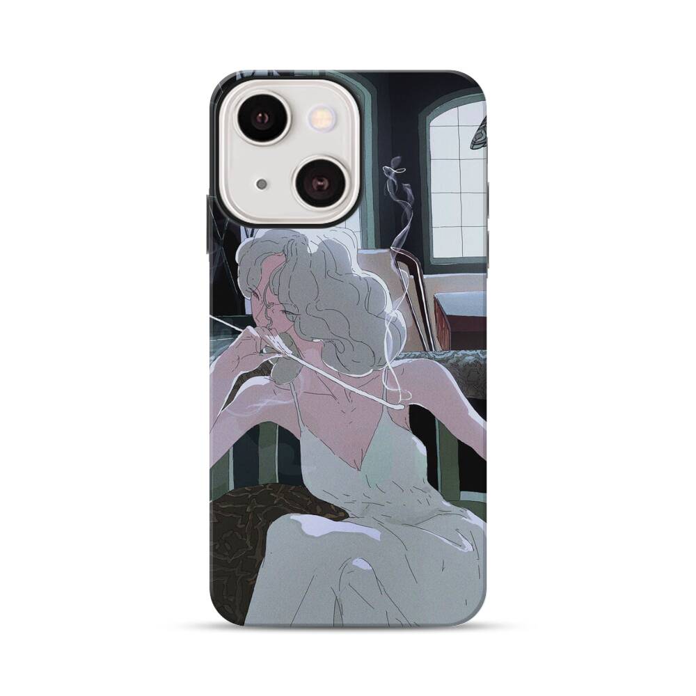 Elegante rauchende Dame Apple iPhone 13 Mini Hybrid Case● Rundum bedruckbar