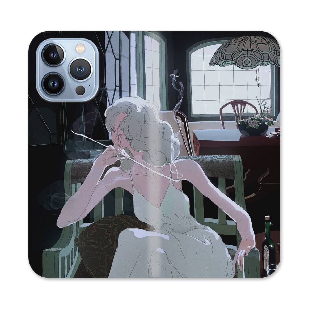 Elegante rauchende Dame Apple iPhone 13 Pro Flip Case● Seitlich klappbar