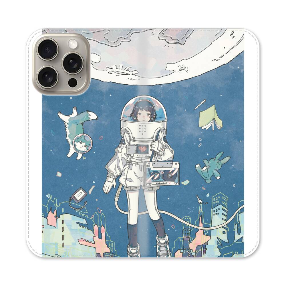 Mädchen im Weltraum Apple iPhone 15 Pro Max Flip Case● Seitlich klappbar