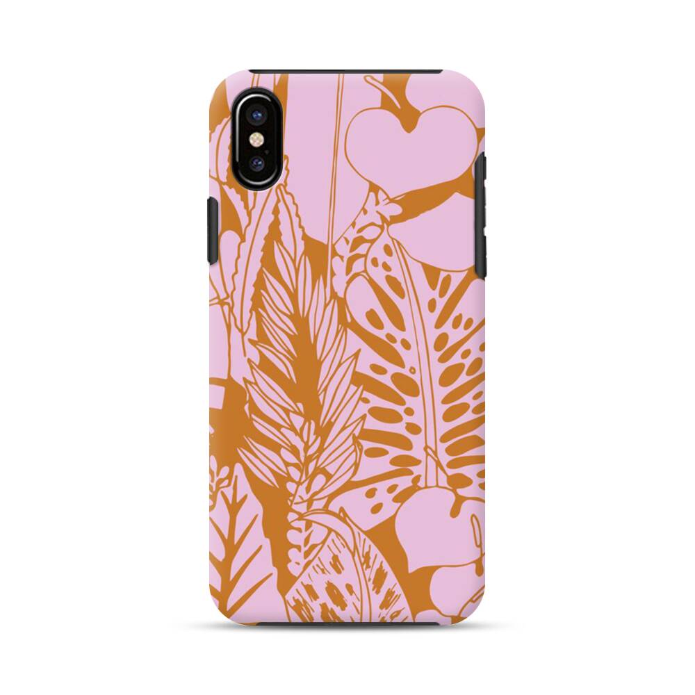 Pinke Blätter iPhone XS Hybrid Hülle● Rundum bedruckbar
