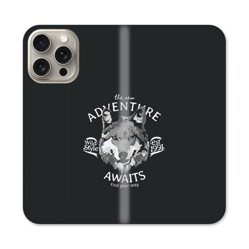 Der lächelnde Wolf Apple iPhone 15 Pro Max Flip Case● Seitlich klappbar