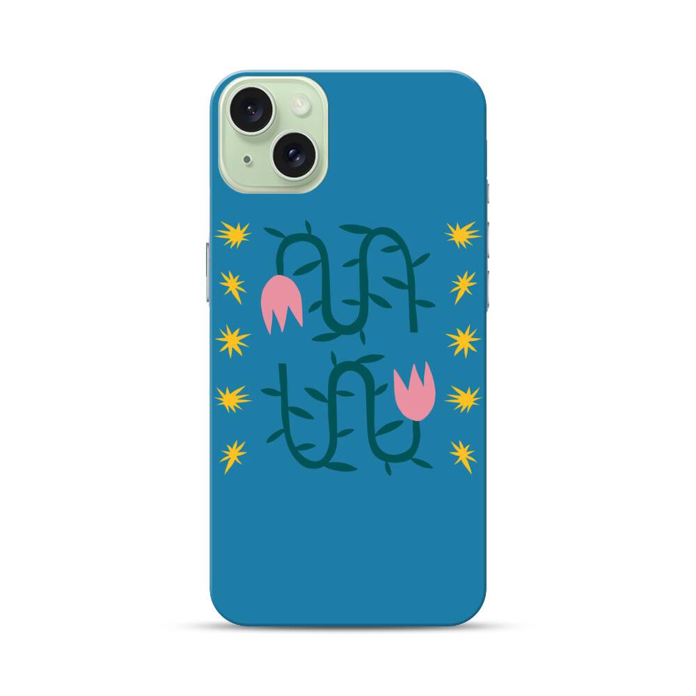 Blumen und Sterne Apple iPhone 15 Plus Hülle● Rundum bedruckbar