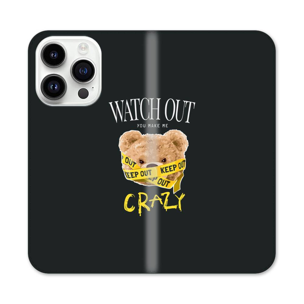 Cartoon Verrückter Bär Apple iPhone 14 Pro Flip Case● Seitlich klappbar