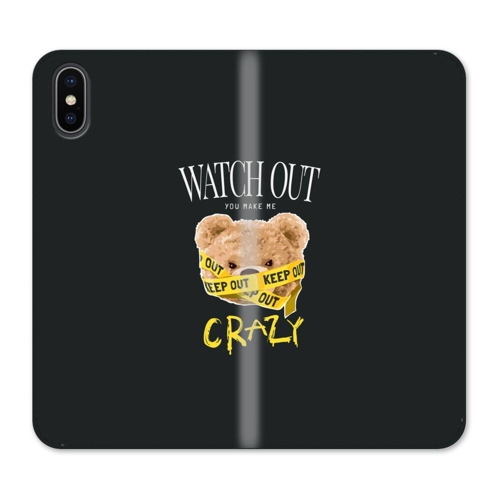 Cartoon Verrückter Bär iPhone XS Wallet Leder Hülle● Seitlich klappbar
