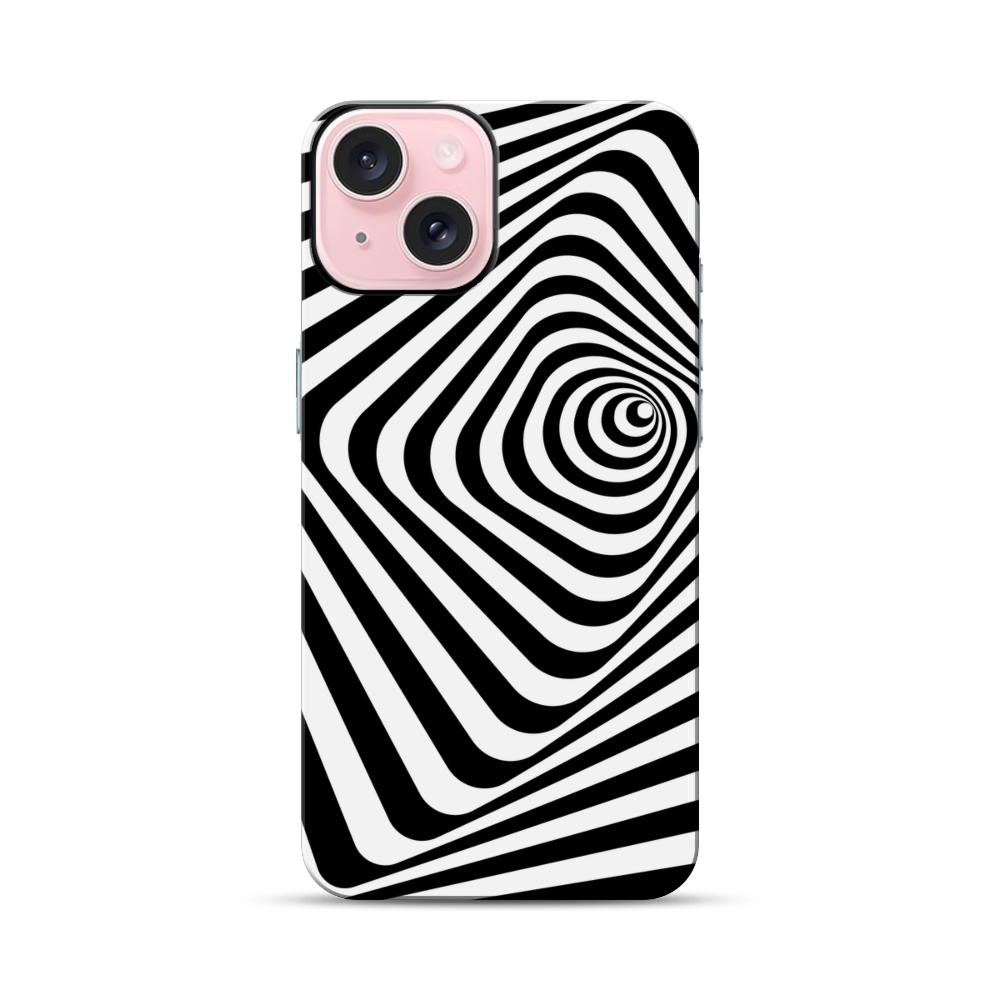 Quadrat Schwarz weiß Wirbel Apple iPhone 15 Hybrid Case● Rundum bedruckbar