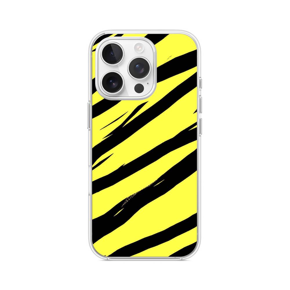 Schwarz Gelbe Streifen iPhone 15 Pro MagSafe‑kompatible Silikonhülle mit Kamera‑Kickstand● Sehr robust & langlebig