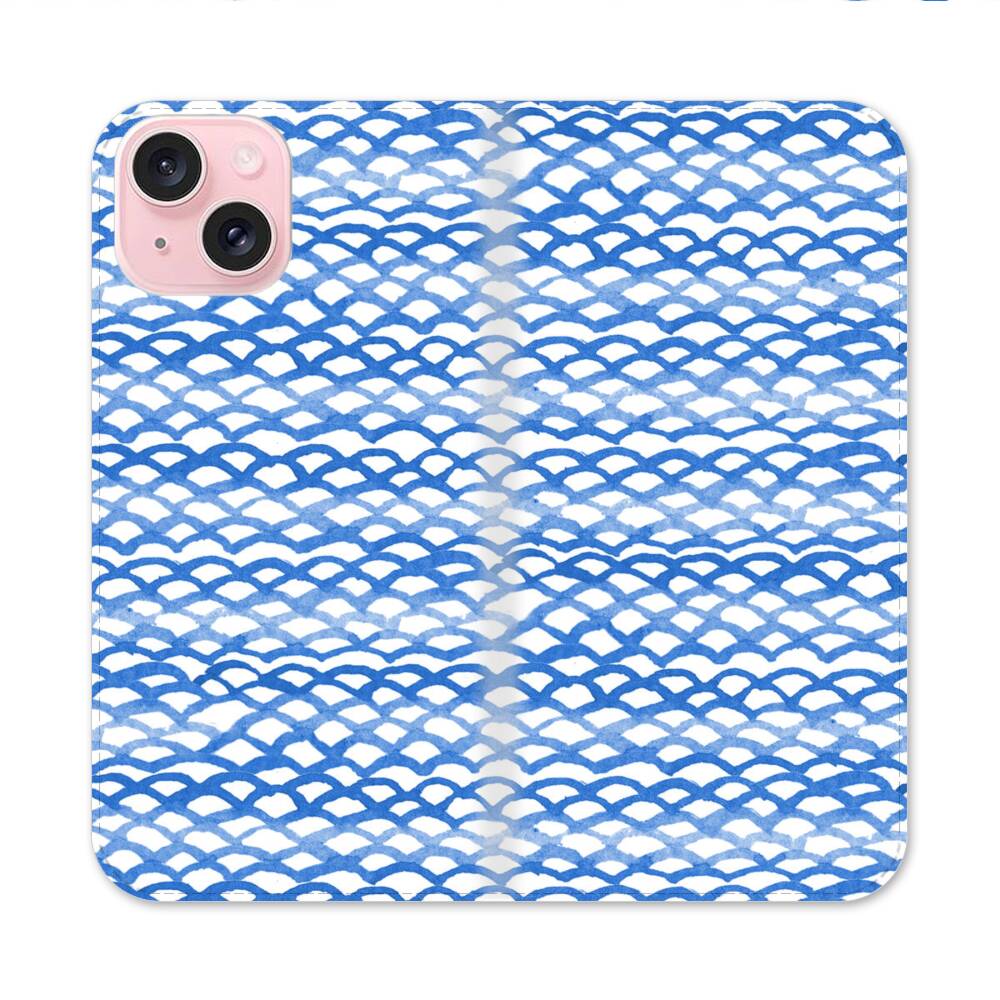 Nahtlose Blaue Fischschuppen Apple iPhone 15 Flip Case● Seitlich klappbar