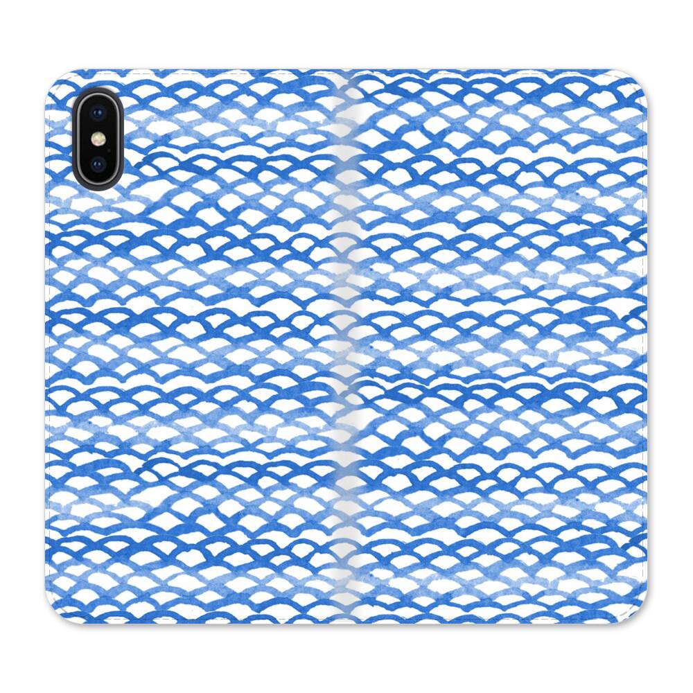 Nahtlose Blaue Fischschuppen iPhone X Wallet Leder Hülle● Seitlich klappbar