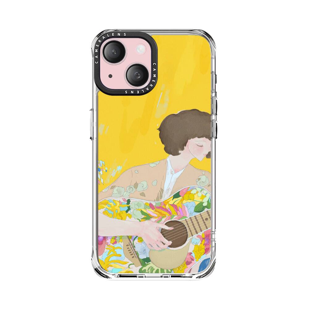 Künstlerische Dame mit Gitarre Apple iPhone 15 Silikon Hülle● Sehr robust & langlebig